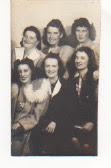 I found this picture of my mother and friends but I don't know who any of them are or when it was taken. My mother looks young - she is in the back middle. Anyone with any ideas?