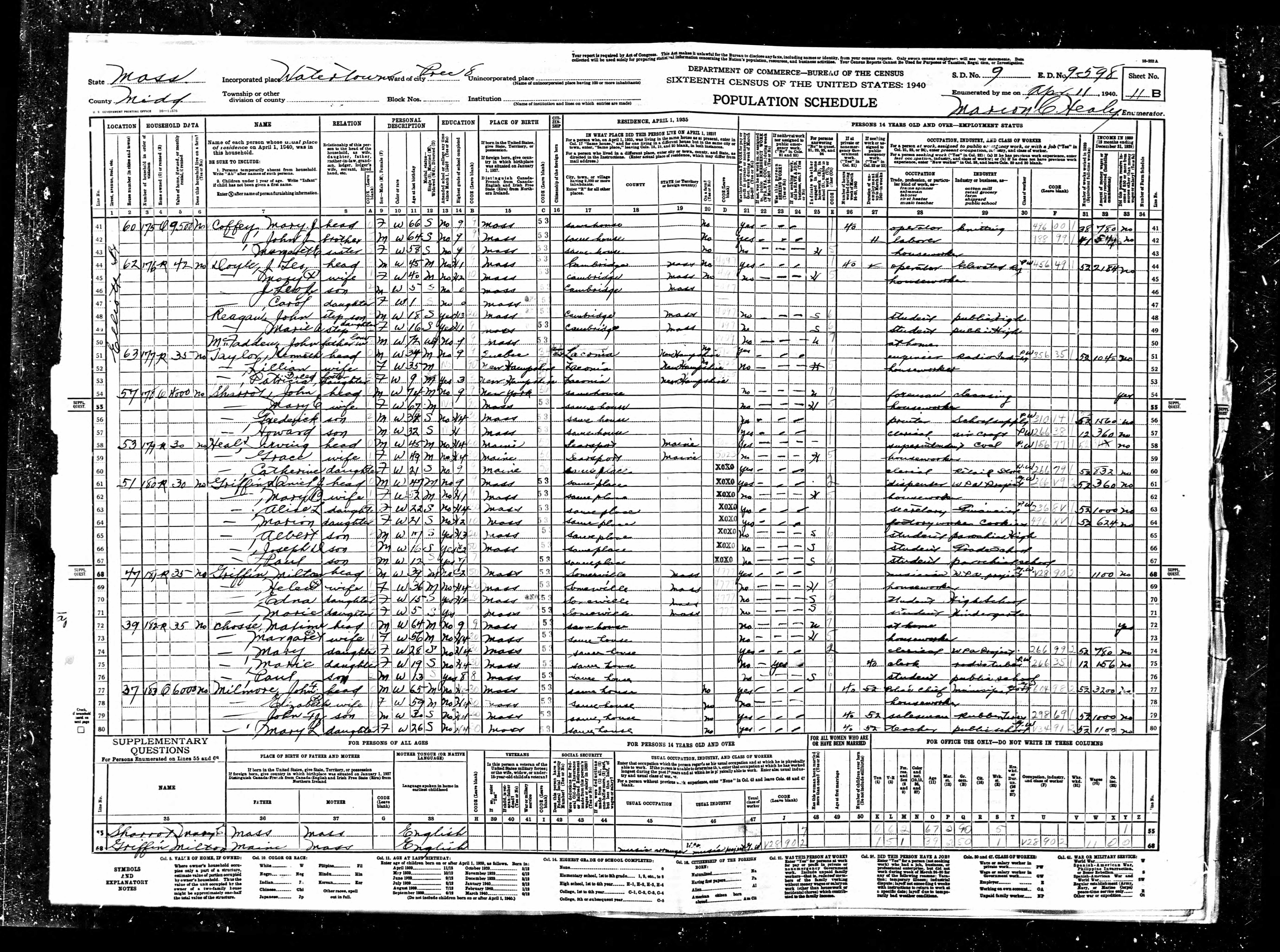 At 18 Naviens Lane there was a Brennan family paying $32/month rent - they had a radio. I mention this because I am wondering if these Brennans were related to Hanorah Brennan who was married to Michael Navien. Head of family Patrick Brennan was 59 years old and was born in the Irish Free State. He immigrated to the US in 1891 and was an alien. He was a coal yard man. His wife was 59 Bridget Brennan who was also born in the Irish Free State - she immigrated in 1893 and was an alien.