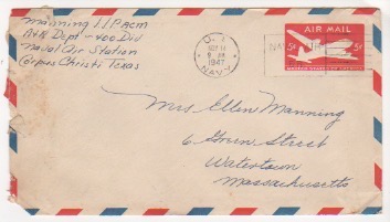 The weather down here is beginning to take on its winterish feeling but the heat of the noon day sun brings back the heat once again. A cold snap is upon us now but no one seems to know how long it will last especially me. I can stand it as it can't really get too cold for me, I'll have to go home for that. The rains fall everywhere but in Texas and the farmers down here are praying in their own inimitable manner for a deluge to get some moisture into the soil. If it doesn't come soon a lot of the people in the know are predicting a drought and dust bowl down here. All during the war the lands have been exploited to the utmost and the good earth is about all sapped out due to lack of rest. If I haven't told you already I got the greens all right and thank you a million my pet. Now I'm prepared for anything that comes up any time any place. If if gets really cold I'll have something to keep me warm. Thanks again honey, I think you're wonderful.